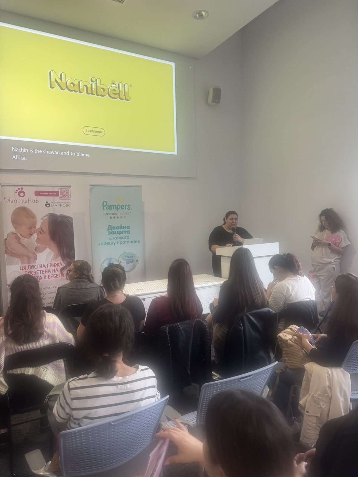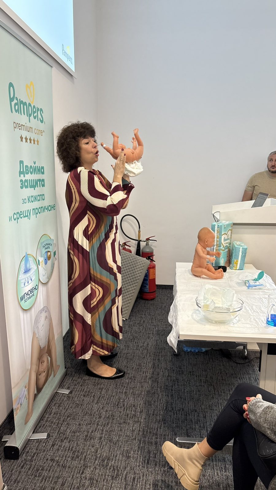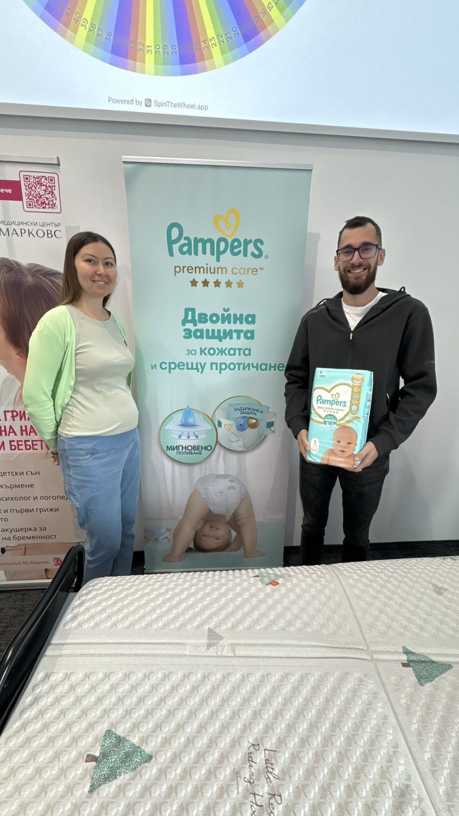 Срещата завърши с томбола, в която участниците спечелиха пелени Pampers, помощници срещу колики Nanibell и курсове за първа помощ.
