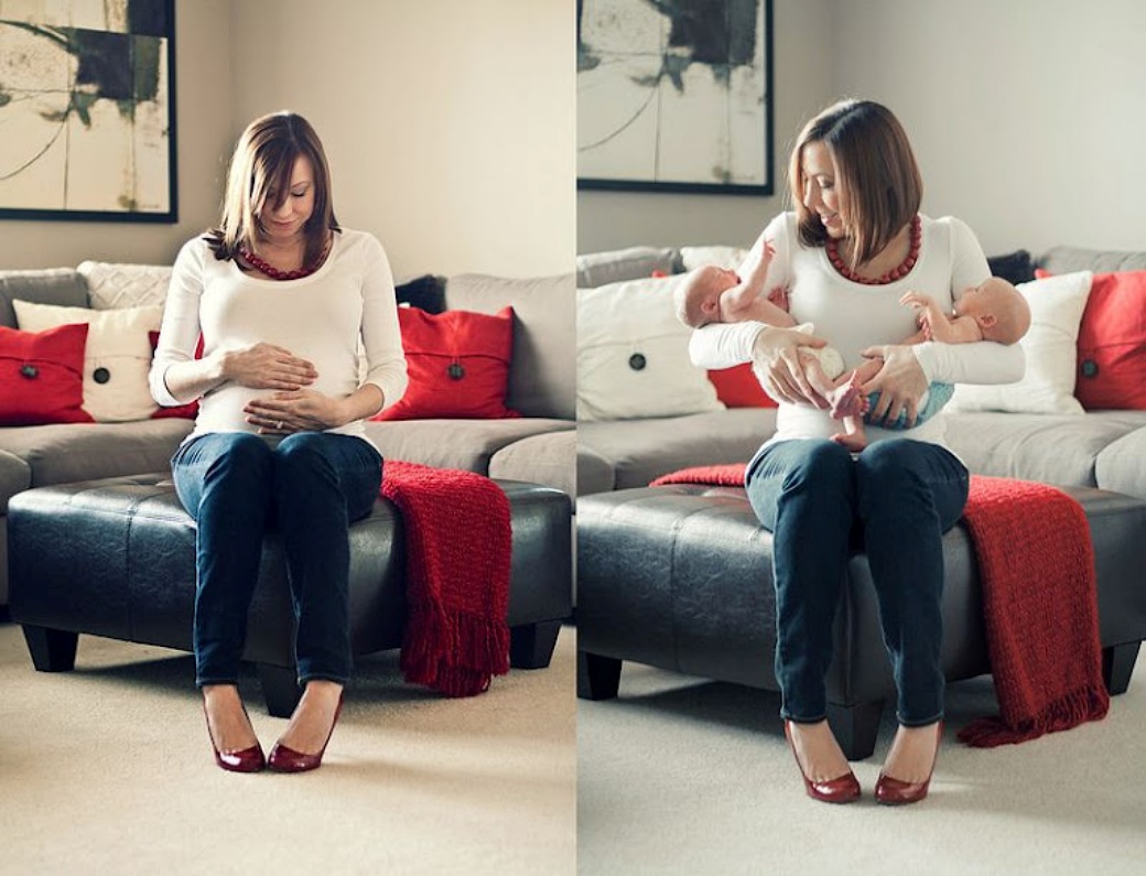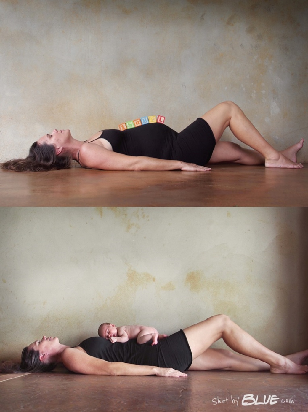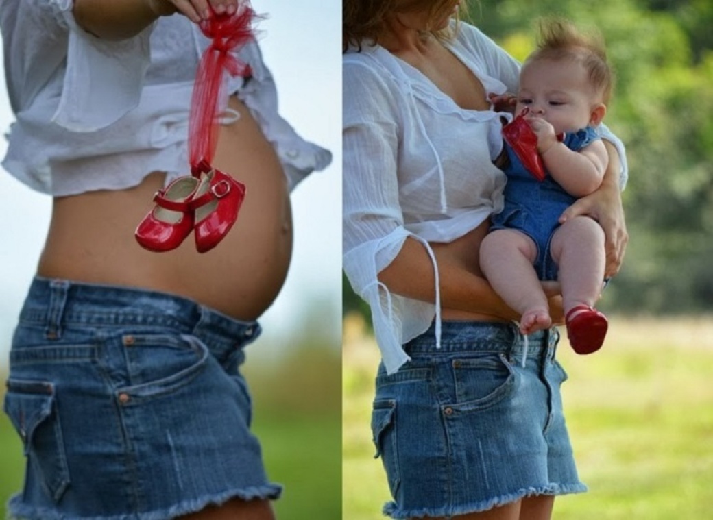 Много мами решават да запазят специалния момент в кадър и правят колаж със снимка ПРЕДИ и СЛЕД появата на бебето. Резултатът винаги е очарователен.