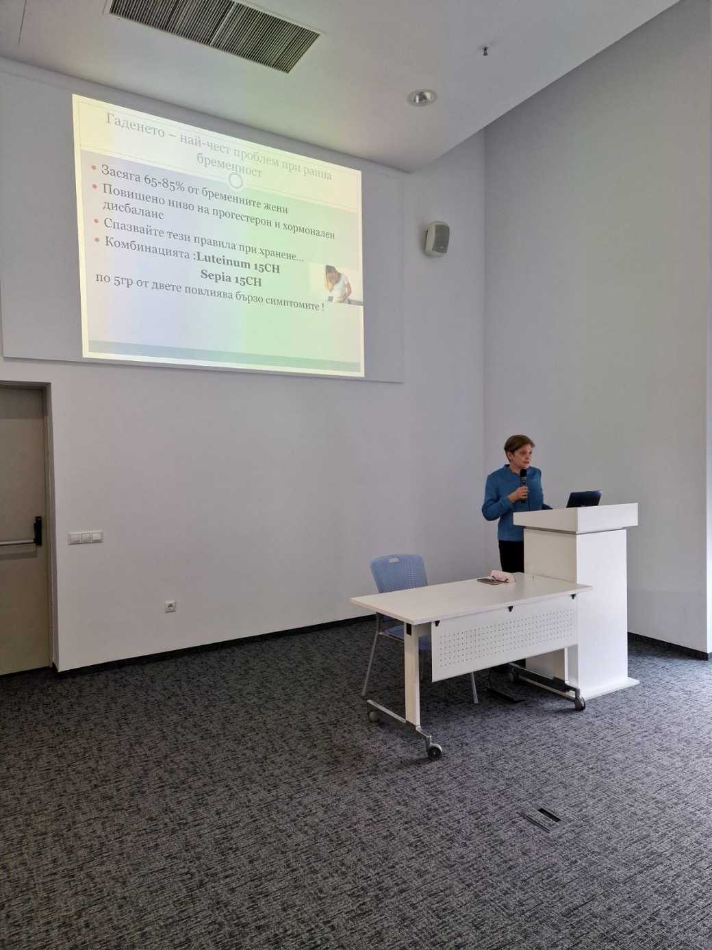 Срещнахме се още и с д-р Камелия Бачовска, педиатър и детски хематолог. Тя сподели повече за богатствата на хомеопатичното лечение и ни доказа, че Boiron е отличен наш помощник през 9-те месеца, а и не само.