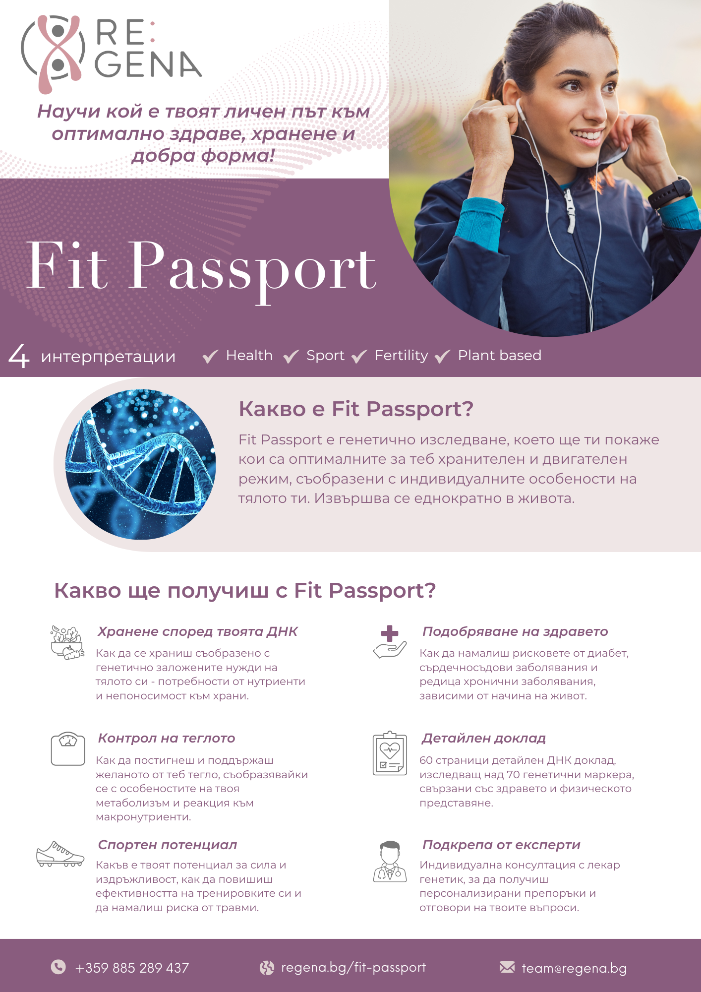 Голямата изненада, която ще зарадва един от посетителите е ДНК пакетът Fit Passport от Re:Gena, който един от посетителите ще спечели. Това е най-пълният и надграден вариант на пакета – включва Health Plus + Hormone Metabolism модули, анализ от лекар генетик, персонални препоръки и едночасова индивидуална консултация.