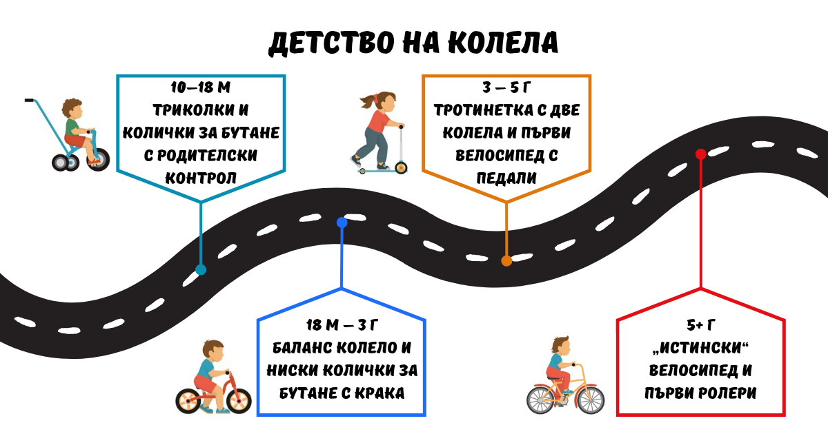 Неподходящият избор обаче може да затрудни усвояването на важни двигателни етапи. Затова е важно родителите да познават „пътната карта“ на детските возила и как всяко от тях подпомага физическото и мозъчното развитие на детето.